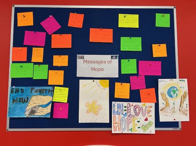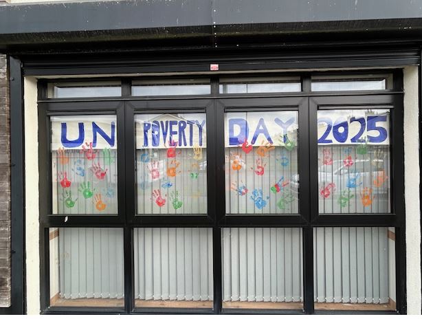On October 17th, the Tullamore Community & Family Resource Centre marked the United Nations Day for the Eradication of Poverty under the theme “Working Together with a Radical Hope and Decisive Action to End Poverty and Leave No One Behind.” Guest speaker John Devery, President of St. Vincent de Paul, addressed attendees, who shared messages of hope and added painted handprints to a window in solidarity with those affected by poverty worldwide. Over 40 participants enjoyed a community lunch, and an accompanying Art Box Café session, which  invited creative reflection on the theme through watercolour painting. The event was promoted through the Centre’s newsletter, social media, distributed locally and available on-site.