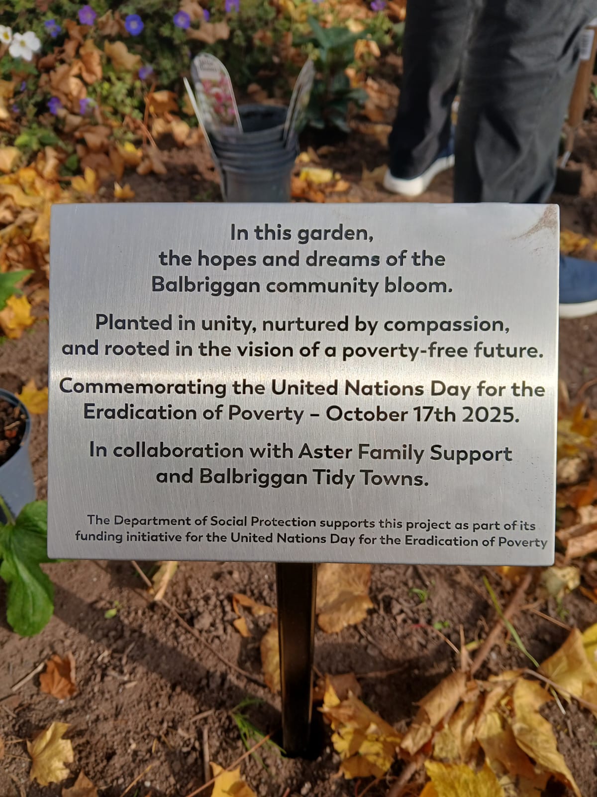 Aster Family Resource Centre hosted an afternoon workshop to celebrate International Day for the Eradication of Poverty on October 17th. They had a conversation around ways to overcome poverty. The group heard from special guest speakers from our community about their own experiences of poverty, as well as presentations from services that discussed their plans to support people to overcome poverty.  All attendees were then invited to plant their hopes and dreams for a poverty free future in a community garden with the support of Balbriggan Tidy Towns.  The day was ended with food and refreshments.